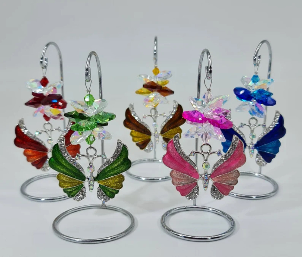 Butterfly Crystal Suncatcher on Stand, rhinestone pendant butterflies charm suncatchers, rainbow gift 10cm tall