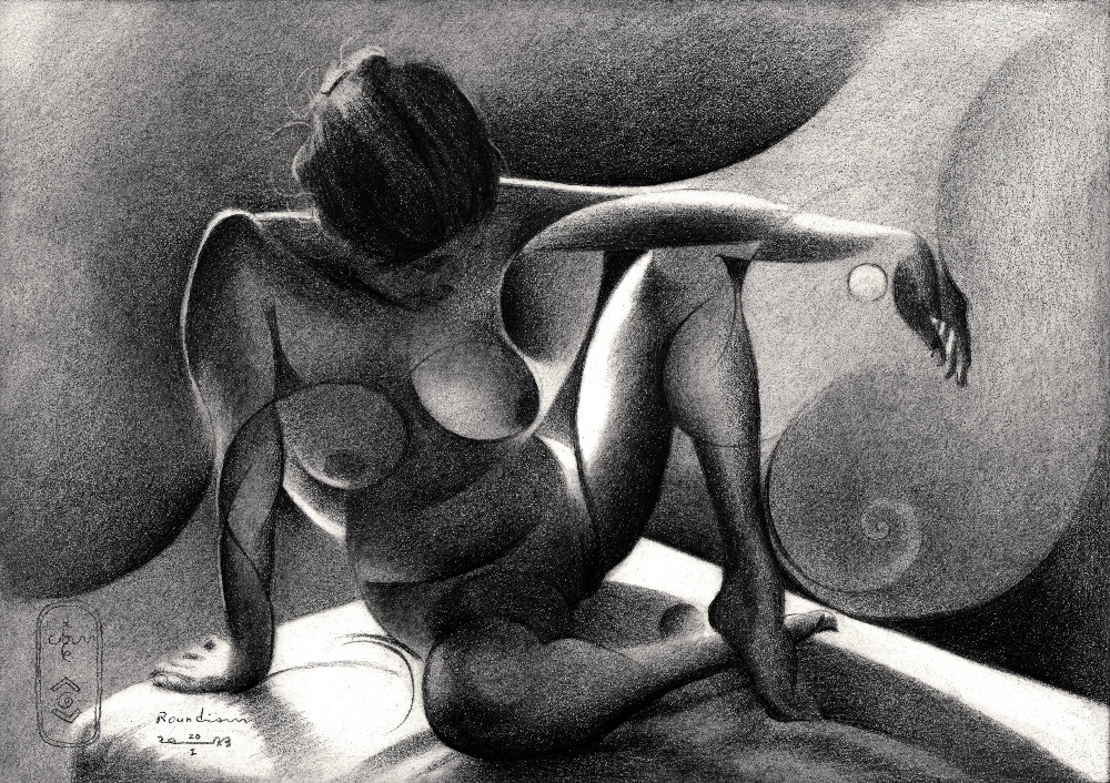 A specific style is what I call ‘roundism’ and is my personal version of traditional cubism practised by Pablo Picasso and George Braque. Big rivers gain contribution from many side streams and so these cubist giant inspirators were followed by people like Tamara de Lempicka with her conal shaped figures and her sharp tonal cadences.