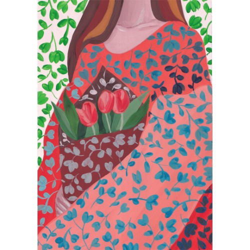 Original gouache painting. Bouquet of orange Tulips. Art illustration.