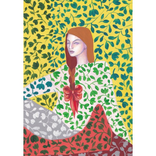 Original gouache painting. Yellow floral carpet. Art illustration.