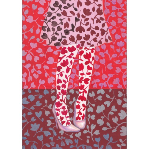 Original gouache painting Art illustration Floral pattern Pink dress and Lace stockings