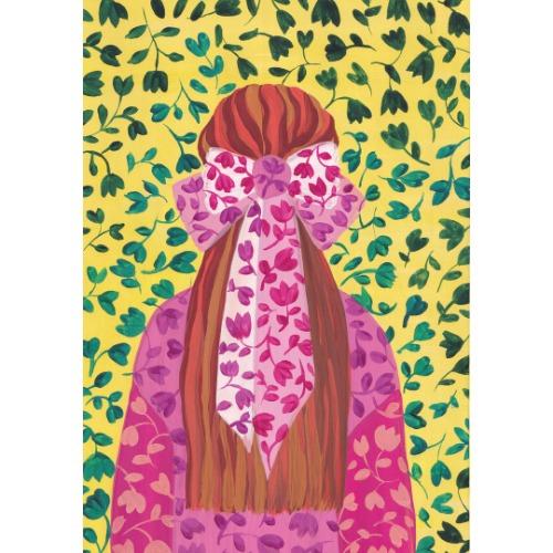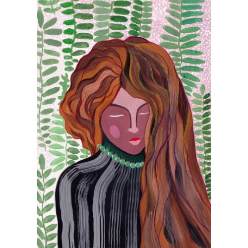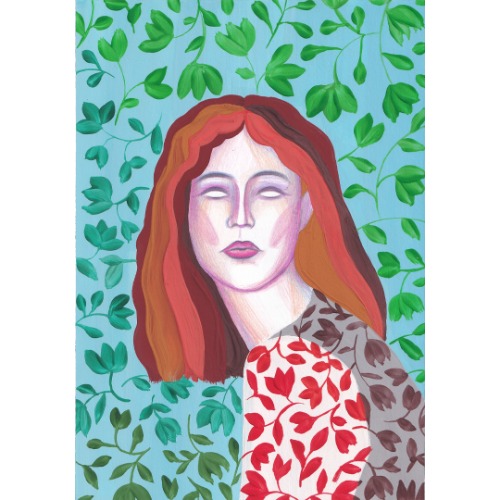 Original gouache painting Art illustration Floral pattern Red-haired Girl