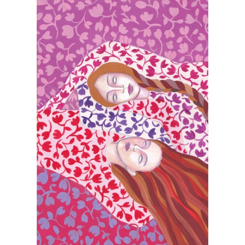 Original gouache painting Art illustration Floral pattern Sisters on a Carpet