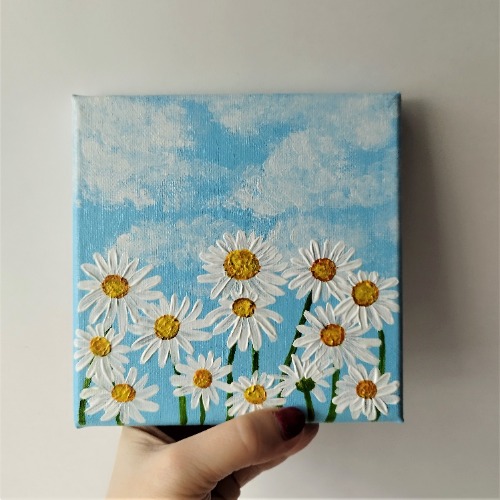Daisy Art Beautiful Chamomile Acrylic Painting for Wall Decor