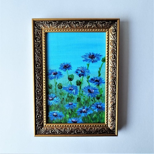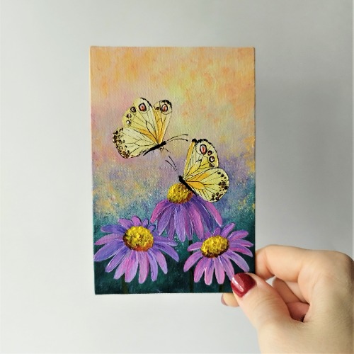Butterflies Acrylic Painting of Daisies: Small Artwork for Your Home
