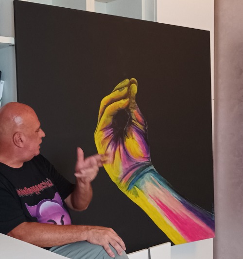 Massimo Greco originally from Salento (Apulia). He lived in Turin (north-west Italy). Today he lives in Abruzzo, in the Vasto area on the Adriatic coast, where he teaches humanities and arts in elementary school. He also attended the Artistic High School and the Albertina Academy of Belle Arti in Turin (set design/scenography). He prefers to paint on canvas with acrylics and oil paints in large formats. Even with mixed techniques. Graphic designer and computer graphic designer. He elaborates his own digital creations for printing on canvas in large formats. Creator of 3d virtual environments and 3d modeling. About info read more on his website.