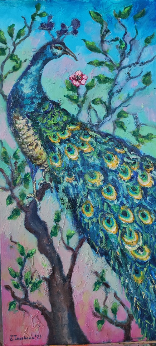 The peacock and the cherry flower